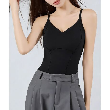 背中をすっきり見せる美背デザインとシームレス仕様で、アウターにも響きにくい。