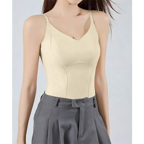 背中をすっきり見せる美背デザインとシームレス仕様で、アウターにも響きにくい。