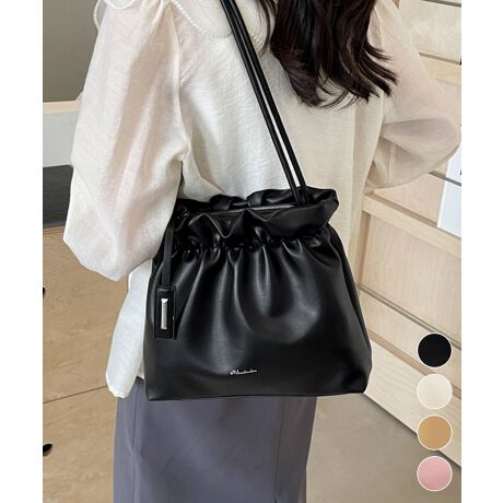 やわらかなフェイクレザーを使用した、ギャザーデザインのショルダーバッグ。