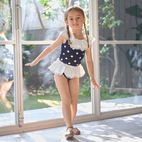 大きめのドット柄が印象的なセパレートタイプの水着です。