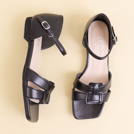 ・フラットヒールながら、足首が華奢に見えるよう計算されたアンクルストラップで脚がすっときれいに見えます。