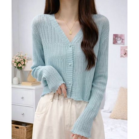 通気性のある編み地で、暑い季節にも取り入れやすい一枚です。