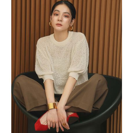 リボンのような糸を度甘に編んでリラクシーなディティールにしています。