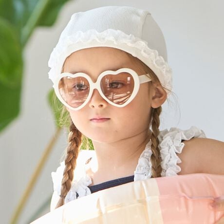 ぐるっとあしらったレースフリルが可愛いスイムキャップです。