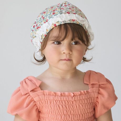 ぐるっとあしらったレースフリルが可愛いスイムキャップです。