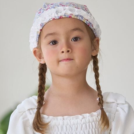ぐるっとあしらったレースフリルが可愛いスイムキャップです。