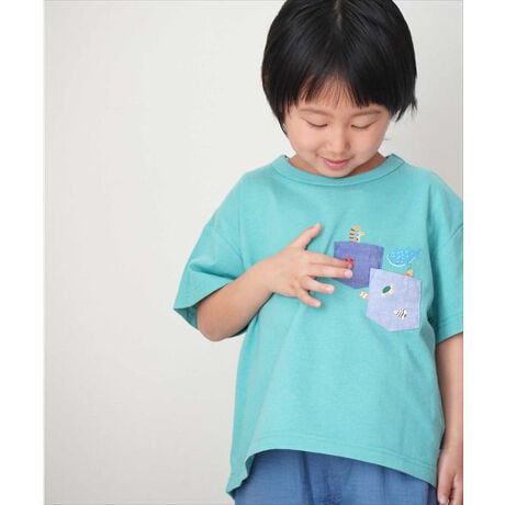 [型番:11343008]【接触冷感】綿100%で通気性のよい天竺の半袖Tシャツです。ポケットがいっぱいでうみのいきものモチーフがかわいい!ベビーサイズは肩開き仕様です。