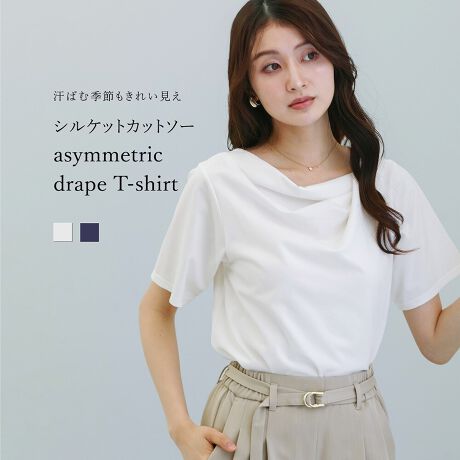 【 汗ばむ季節もきれい見え 】シルケットカットソー・アシメドレープTシャツ