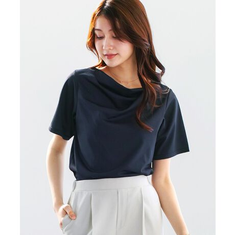 汗染み防止 Tシャツ ドレープT アシンメトリーデザイン シルケットカットソー きれいめトップス オフィスカジュアル 夏トップス 防汚加工 通勤コーデ 上品Tシャツ