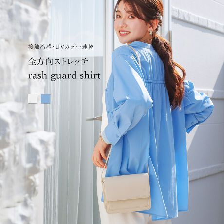 【 接触冷感・UVカット・速乾 】 全方向ストレッチ・シャツ型ラッシュガード