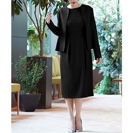 ノーカラージャケット コクーンワンピース セットアップ スーツ フォーマル セレモニー【洗える】