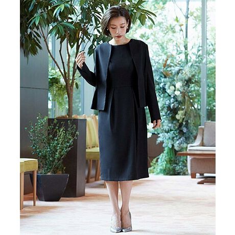 ノーカラージャケット コクーンワンピース セットアップ スーツ フォーマル セレモニー【洗える】