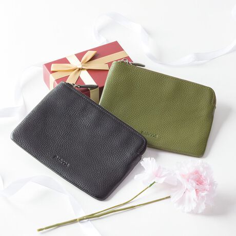 キズがつきにくく丈夫なシュリンクレザーを使用した薄型ポーチ。J字型のファスナーなので、ガバっと開いて中が見えやすい構造です。すっきりとしたスリムなシルエットでバッグの中でかさばりません。散らかりやすい小物の整理等に便利なサイズ感です。