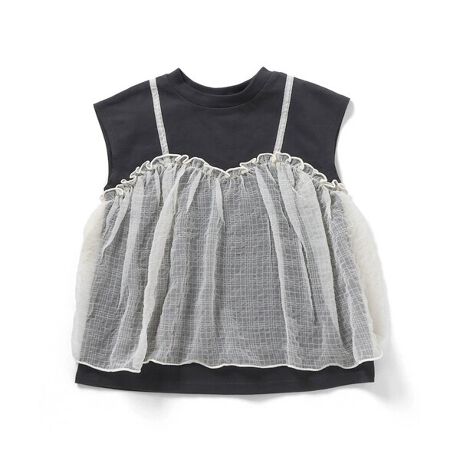透け感のあるチュールキャミを重ねたレイヤード風デザイン。