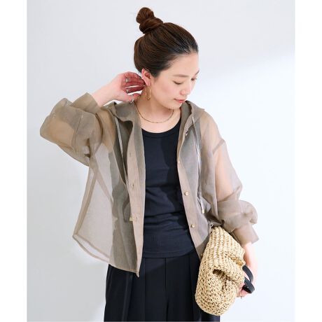 スッキリとした丈感に変更し、よりボトムスとのスタイリングがしやすくなり着回し力がアップしました。ドライタッチで落ち感のあるシアー素材で、シャツ感覚でさらりと羽織れます。ボタンも変更をし、カジュアルすぎない印象です。羽織りとしてはもちろん、ボタンを留めてトップスとしても使える万能なアイテム。