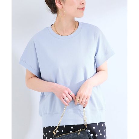 さらりとした肌触りの天竺素材を使用し暑い季節も心地よく着用いただけます。汗染みが目立ちにくい加工を施しているので、デイリー使いにも安心。裾切り替えでほんのり丸みを帯びたニュアンスフォルムに。二の腕もカバーする袖丈で、シンプルながらもさりげない立体感があり、1枚で着映えするデザイン。夏のワードローブに加えたい、機能性とデザイン性を兼ね備えたアイテムです。
