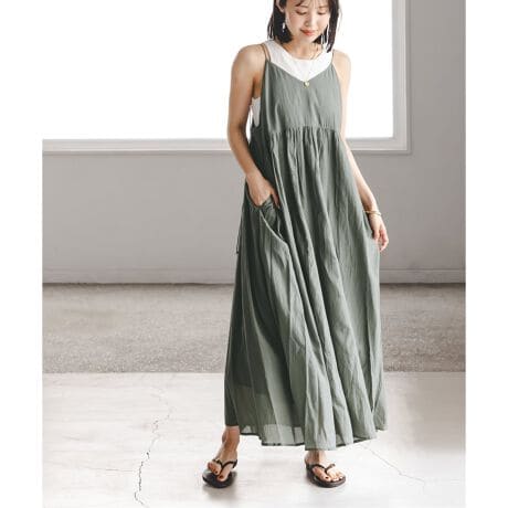 夏のレイヤードスタイルに欠かせないキャミワンピース。