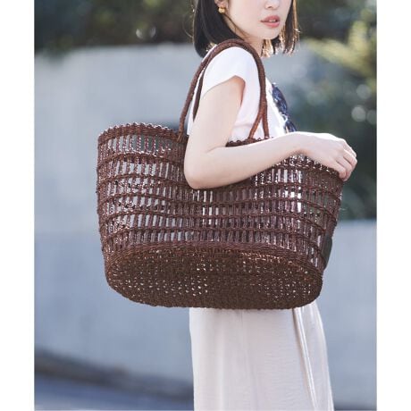 現地職人が一つ一つ丁寧に編み上げるパンダン素材のかごバッグはシンプルなデザインながら美しいフォルムが自慢。
