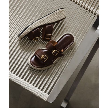 夏の定番、ジュート巻きで仕上げた一足。3段階の調整可能なダブルベルト仕様で安定感があり、履きやすく長時間履いていても疲れにくく仕上げています。