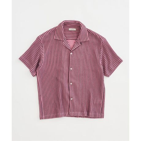 《予約》ストライプ カラーレース オープンカラー 半袖シャツ
