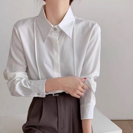 上品でカジュアルにもガーリーにも着こなせるシャツブラウス。