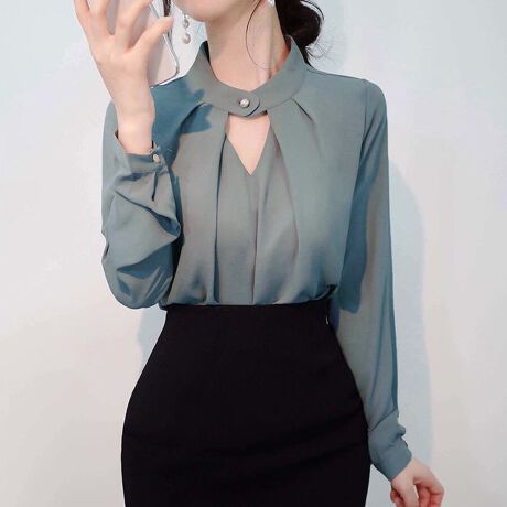 ざっくり開いたVネックがアクセントとなり、顔周りもすっきりとした印象に。