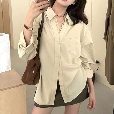 花柄レースが大人可愛いシャツブラウス。