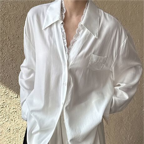 花柄レースが大人可愛いシャツブラウス。