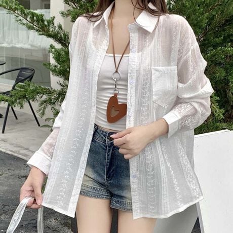 夏の季節にピッタリな透け感のあるシャツカーディガン。