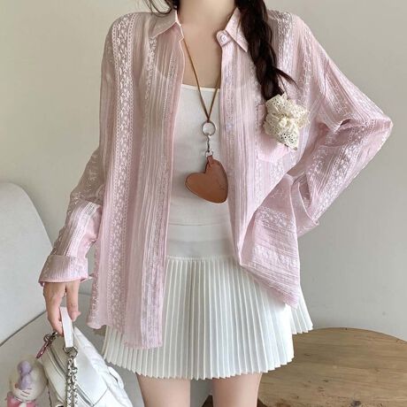 夏の季節にピッタリな透け感のあるシャツカーディガン。