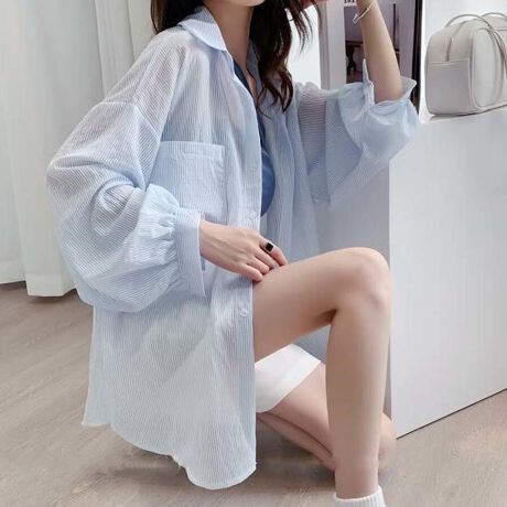 夏の季節にピッタリな透け感のあるシャツカーディガン。