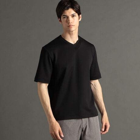 やや浅めのVネックとボディにフィットするスマートなシルエットが魅力。インナーはもちろん一枚でも様になるスタンダードTシャツ。