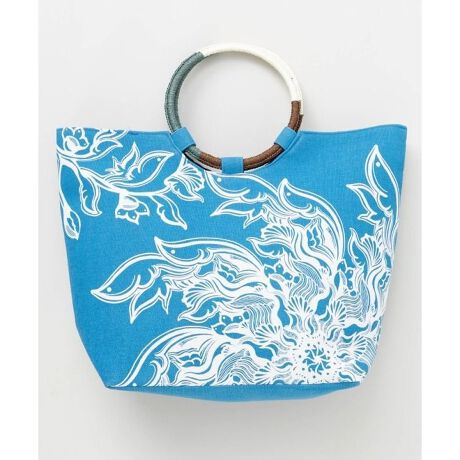 【Amina×VORRUK】タイのアーティストVORRUKとのコラボシリーズ[FLOWER OF THE SUN]。朝に花を咲かせるサンユウカは、一日の始まりに物事が動き出す吉兆を象徴する花。そして白、風車をモチーフに、過去を大切にしながら新しい風を迎える「温故知新」の想いを込めたデザイン。花が風に揺れ、身体に新しい流れが吹き込むような、始まりのエネルギーを感じさせるアートワーク。マチ付きのリングハンドル仕様。開口部はマグネットボタン、裏地付きの内ポケットあり。