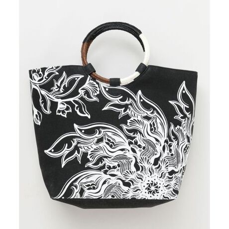 【Amina×VORRUK】タイのアーティストVORRUKとのコラボシリーズ[FLOWER OF THE SUN]。朝に花を咲かせるサンユウカは、一日の始まりに物事が動き出す吉兆を象徴する花。そして白、風車をモチーフに、過去を大切にしながら新しい風を迎える「温故知新」の想いを込めたデザイン。花が風に揺れ、身体に新しい流れが吹き込むような、始まりのエネルギーを感じさせるアートワーク。マチ付きのリングハンドル仕様。開口部はマグネットボタン、裏地付きの内ポケットあり。