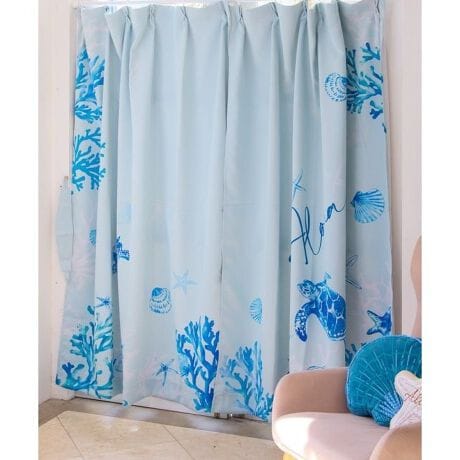 上品なハワイアンリゾートを思わせるデザインのカーテン。空間をやさしく彩りながら、遮光二級と遮熱機能を備えた実用性も魅力です。洗濯可能でお手入れしやすく、タッセルとアジャスターフック付きですぐに使える仕様。