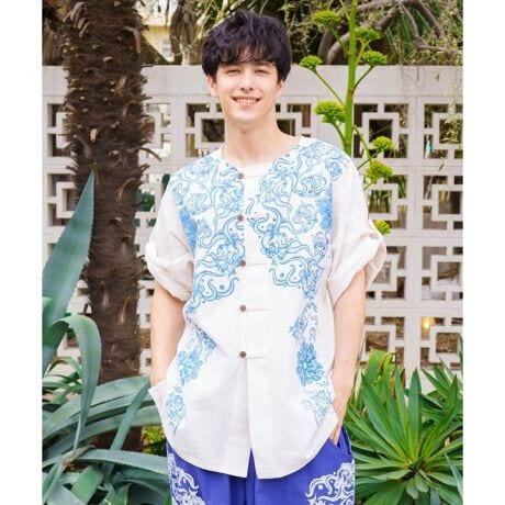 マルイウェブチャネル   /   トップス   /   シャツ   /   【チャイハネ】ガディアメンズノーカラーシャツ【Amina×VORRUK】