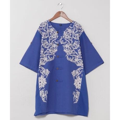 [型番:IAC-6203-2026]【Amina×VORRUK】タイのアーティストVORRUKとのコラボ。朝日に咲く花と太陽をテーマにした曼荼羅のようなデザインが印象的なメンズシャツ。モーホムに着想を得たゆったりとしたシルエットで、脇のスリットや切替生地が動きやすさと快適さを叶えます。シンメトリーなプリントが存在感を放ち、旅先や日常にもおすすめの一着です。