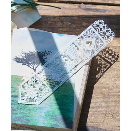 [型番:LEGP6701-2026]プラウエンレースを使用したブックマーク。繊細な編み模様が本の間からのぞき、読書時間を彩ります。クラシカルなデザインで贈り物にもおすすめです。【ドイツ直輸入】