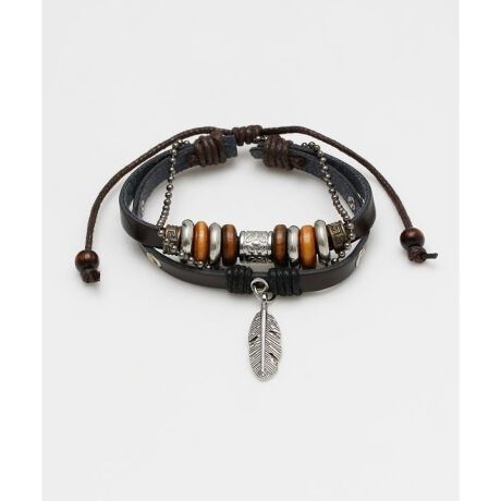 [型番:4KXZ6794-2026]ホエールテールやフェザーモチーフをあしらったレザーブレスレット。重ね付け風デザインで、コーディネートにこなれ感をプラスします。