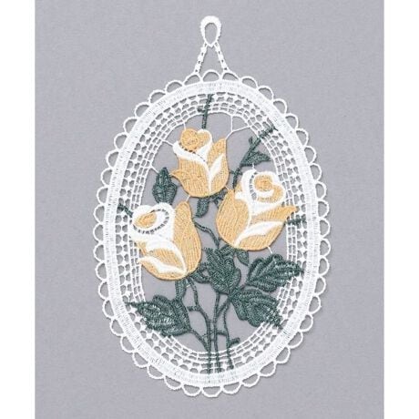 [型番:LEGP6707-2026]ドイツの伝統的なプラウエンレースを使用したオーナメント。立体感のあるバラのデザインが華やかで、伝統工芸の魅力が光る一枚。お部屋に優雅なアクセントを添えます。【ドイツ直輸入】