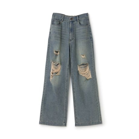 【LTXC/接触冷感】ダメージデニムワイドパンツ