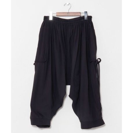 [型番:IDS-6136-2026]伸縮性のあるカットソー素材を使用したメンズ変形サルエルパンツ。サイドストリングでシルエットの変化を楽しめ、ペンポケット付きで機能性もあるデザイン。リラックス感がありながら個性的なスタイリングに。