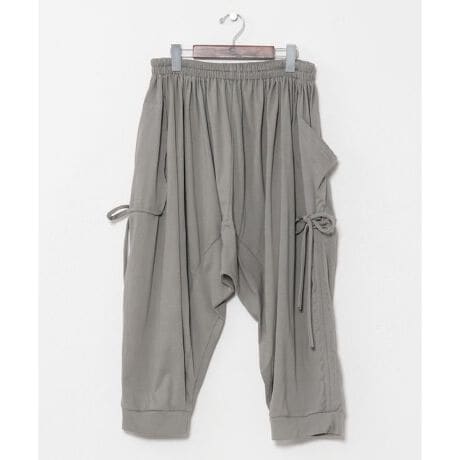 [型番:IDS-6136-2026]伸縮性のあるカットソー素材を使用したメンズ変形サルエルパンツ。サイドストリングでシルエットの変化を楽しめ、ペンポケット付きで機能性もあるデザイン。リラックス感がありながら個性的なスタイリングに。