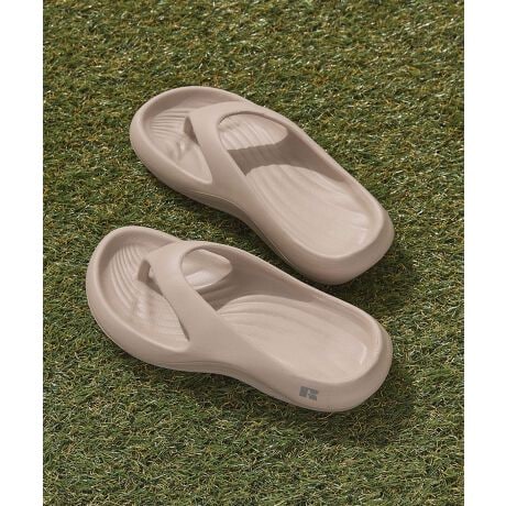 RUSSELL ATHLETIC別注アイテムしっかりとした安定感が魅力のトングタイプビーチサンダル。程よくボリュームのあるソールのサイドに配した「RUSSELL ATHLETIC」の「R」マークプリントがさりげないアクセントです。軽くて柔らかく、クッション性に優れたEVA素材を使用。軽量で歩きやすく、汚れてもさっと拭くだけで簡単にお手入れできます。「RUSSELL ATHLETIC」のロゴをあしらった巾着付きで収納や持ち運びにも便利。リラックス感のあるデザインでビーチからタウンユースまで幅広く活躍する一足です。