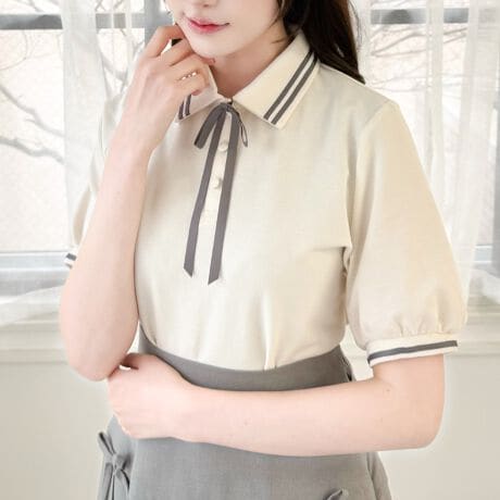 フロントのリボンタイは取り外しができるので、リボンラインを活かしたシンプルめな着こなしもできる2wayデザインです。