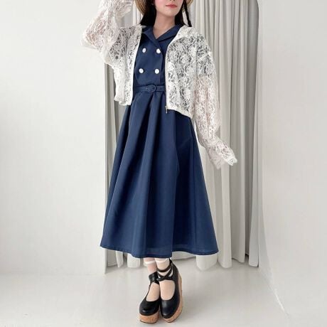 カーデを羽織ったり、レーストップスをレイヤードした着こなしにアレンジするのもオススメです。