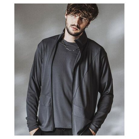 伸縮性に優れたテレコ素材をベースに、アシンメトリー構造を取り入れたZIPカーディガン。
