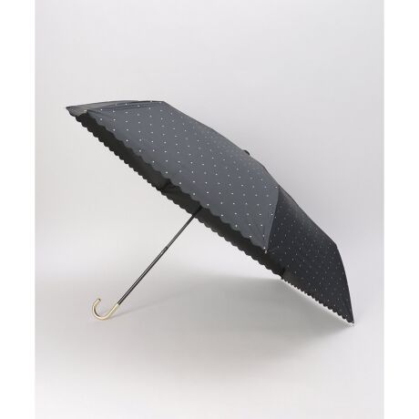 全体に広がる細かいドット柄とゴールドカラーのハンドルがアクセントになった折りたたみ日傘。