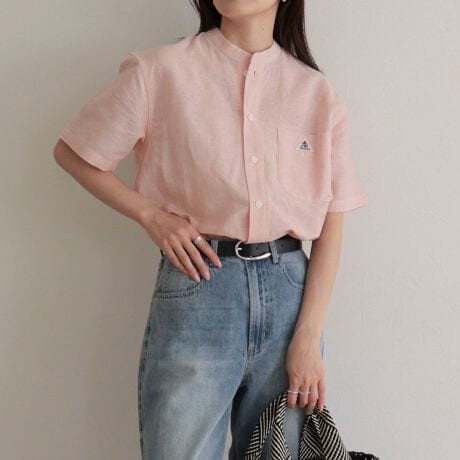 ・綿麻素材を使用した、軽やかで通気性の良いバンドカラーシャツ