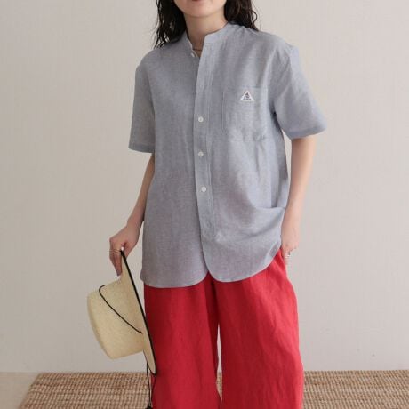 ・綿麻素材を使用した、軽やかで通気性の良いバンドカラーシャツ